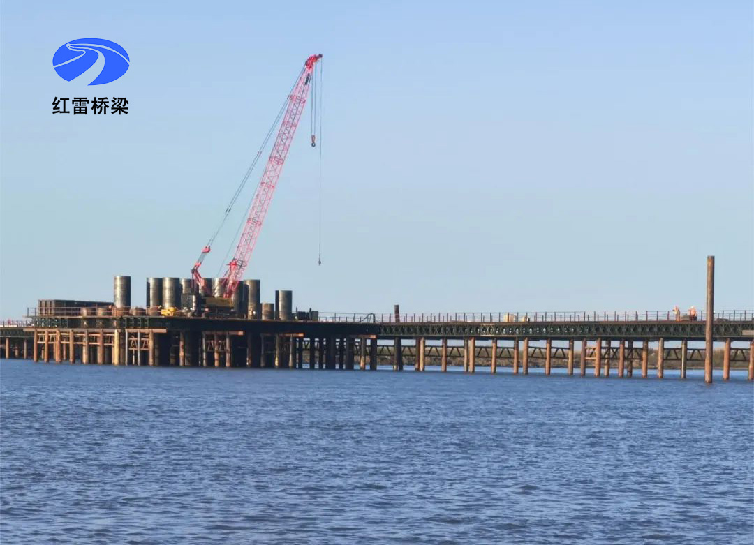 红雷桥梁根据现场地形地貌并结合荷载使用要求,经过现场勘查、结合现场施工情况设计钢栈桥和钢平台施工方案